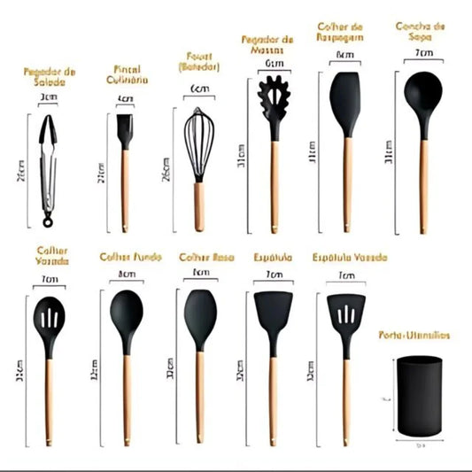 Jogo Utensílios de Cozinha 12 Pçs Silicone
